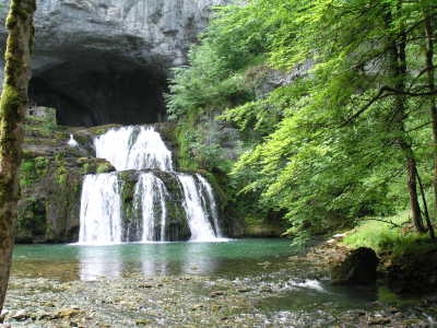 Nach ca. 3 km Fahrt abwärts waren wir bei der Lison-Quelle, die trotz der Trockenheit als grosser Fluss aus einer senkrechten Felswand trat. |