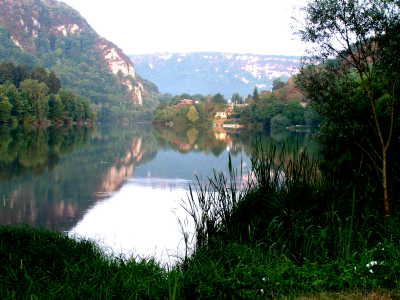 Bei dieser obligatorischen Verdauungsfahrt bemerkte ich ein beängstigendes Knacken am Hinterrad. Wir kontrollierten mein Hinterrad auf Speichenbruch, konnten jedoch nichts feststellen und fuhren mit Knackgeräuschen weiter mit dem Gedanken, dass es eventuell am Ölmangel des Radlagers liegen könnte (Der Spruch „Dummheit ist auch eine natürliche Begabung“ von Wilhelm Busch sollte sich zwei Tage später bewahrheiten). Um 8 Uhr fanden wir einen geeigneten Schlafplatz in der Nähe eines Champingplatzes am Fluss Ain und stellten unser Zelt auf, um unsere von der Hitze und Anstrengung ermüdeten Knochen auszustrecken. |