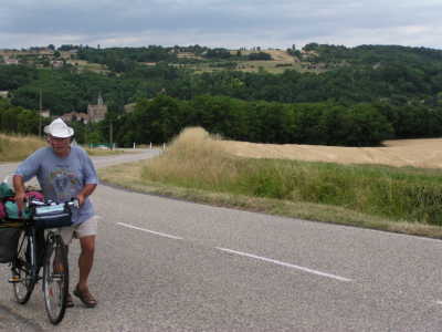 Jetzt wurde wieder notdürftig zusammengebaut und abwärts ging es zu einem nahe gelegenen Zeltplatz. Der Zeltplatzinhaber war sehr freundlich und stand uns mit Rat und Tat bei. Er gab uns sogar noch ein altes, demoliertes Hinterrad, das jedoch nicht passte. Jetzt musste irgendwie Ersatz her. Da der Tag zur Neige ging, blieben wir auf dem Zeltplatz und ich wollte am anderen Morgen mit Gerds Fahrrad das Hinterrad in der nächsten Stadt reparieren lassen. So kamen wir wenigstens zu einem guten Abendessen und unserem Bier bei den Franzosen (es waren deren 5 und 4 Vin rouge). Der Zeltplatzinhaber wollte immer noch einen ausgeben. Aber um nicht völlig kaputt am anderen Morgen aufzuwachen, gingen wir müde und leicht beduselt ins Zelt und überlegten uns, wie wir das Fahrrad wieder in Ordnung bringen könnten. Über das Grübeln sind wir wohl eingeschlafen. |