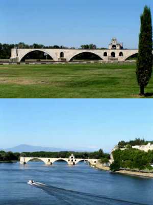 Nach dem Erreichen des höchsten Punktes hatten wir eine wunderschöne Aussicht, doch bei der tollen Abfahrt musste man immer auf die Strasse achten, auch wenn es noch so verführerisch war, den Blick in die offene Weite zu werfen. Ohne grosse Bremsmanöver ging es der Stadt Uzes entgegen, und je tiefer wir kamen, um so wärmer wurde die Luft. Überall in den Strassen der Stadt waren Marktstände und durch die Menschenmassen (ganz Frankreich schien auf den Beinen) war das Vorwärtskommen sehr schwierig. Nachdem wir es bis zur Stadtkirche geschafft hatten, besichtigten wir diese zu Erholung und vor allem zur Abkühlung. Anschliessend horchten wir noch den Klängen einer in der Nähe der Kirche spielenden Jazzband zu, die tolle Stimmung machte. Nach zwei Stunden Aufenthalt in der Stadt suchten und fanden wir schliesslich auch die N 981 in Richtung Avignon. Der Autoverkehr wurde hinter jedem Dorf stärker und die grössten Lastwagen brausten in relativ knappem Abstand an uns vorbei. Wer noch nie im Leben Angst hatte, kann es auf dieser Strasse erlernen. Zum nachdenken sollte doch dieser Spruch passen: „Erst habe ich gemerkt, wie das Leben ist. / Und dann habe ich verstanden, warum es so ist, / und dann habe ich begriffen, warum es nicht anders sein kann. / Und doch möchte ich, daß es anders wird“. (Kurt Tucholsky) Von dem starken Autoverkehr völlig entnervt, erreichen wir am frühen Nachmittag Avignon. Zuerst suchten wir die berühmte, jedoch für mich nicht so spektakuläre Brücke von Avignon auf. |