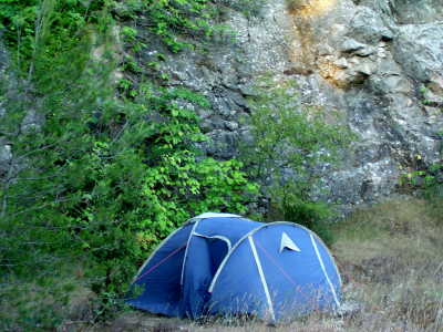 Die Nacht hatten wir in einer Gewürzküche zugebracht. Es roch beim Aufwachen im und um das Zelt herum wunderbar nach Thymian, Majoran und Estragon. Wir hatten es am Abend in einem wild wuchernden Gewürzgarten aufgestellt. Lässt man seine Phantasie walten und schaut sich unseren Zeltplatz von einiger Entfernung an, könnte man meinen, der Steinbruch sei eine Bratpfanne und das Zelt mit Inhalt ein mit Gewürzen gut präparierter Kalbsrollbraten. Vor Earascon bzw. Beaucaire hatten wir übernachtet und fuhren um acht Uhr wie gewöhnlich los. In Windeseile wurden die ersten 50 km nach St. Gilles auf der relativ ebenen Strecke zurückgelegt. In dem Städtchen war gerade Markt und bei den verschiedenen, lieblichen Düften kam ein Hungergefühl auf. |